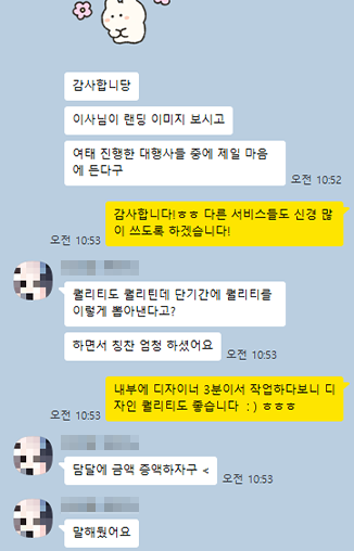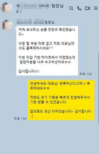 덕분에 부족한 점은 채우고 나아 갈 방향을 잡을 수 있었고 퀄리티도 너무 높아서 대만족입니다.