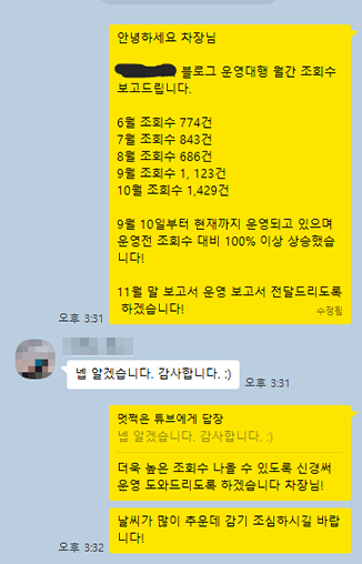 대전에 있는 곳 중에 그나마 규모가 좀 있는 곳이라 SNS랑 블로그 운영을 맡겼었는데, 생각보다 반응이 좋고 캠페인도 널리 퍼뜨려서 내부 반응도 좋았습니다.