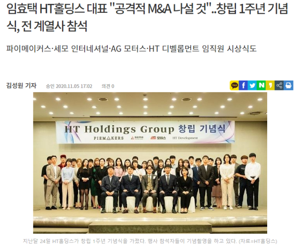 임효택 HT홀딩스 대표 "공격적 M&A 나설 것"..창립 1주년 기념식, 전 계열사 참석