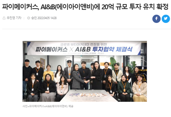 파이메이커스, AI&B(에이아이앤비)에 20억 규모 투자 유치 확정
